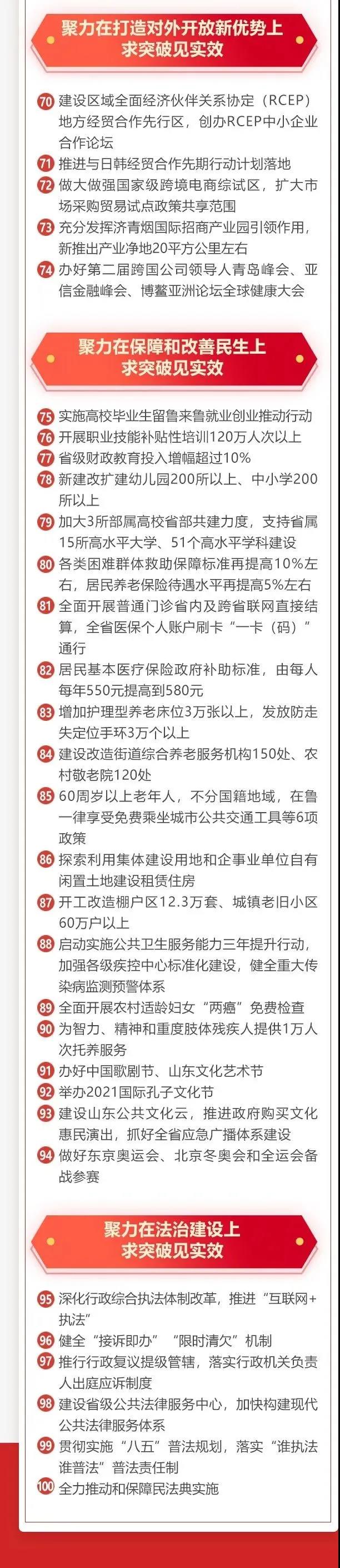聚力在保障和改善民生上求突破见实效:注重普惠性、基础性、兜底性,尽力而为、量力而行,努力把群众关心的事情切实办好。今年起,60周岁以上老年人,不分国籍地域,在鲁一律享受免费乘坐城市公共交通工具等6项政策。