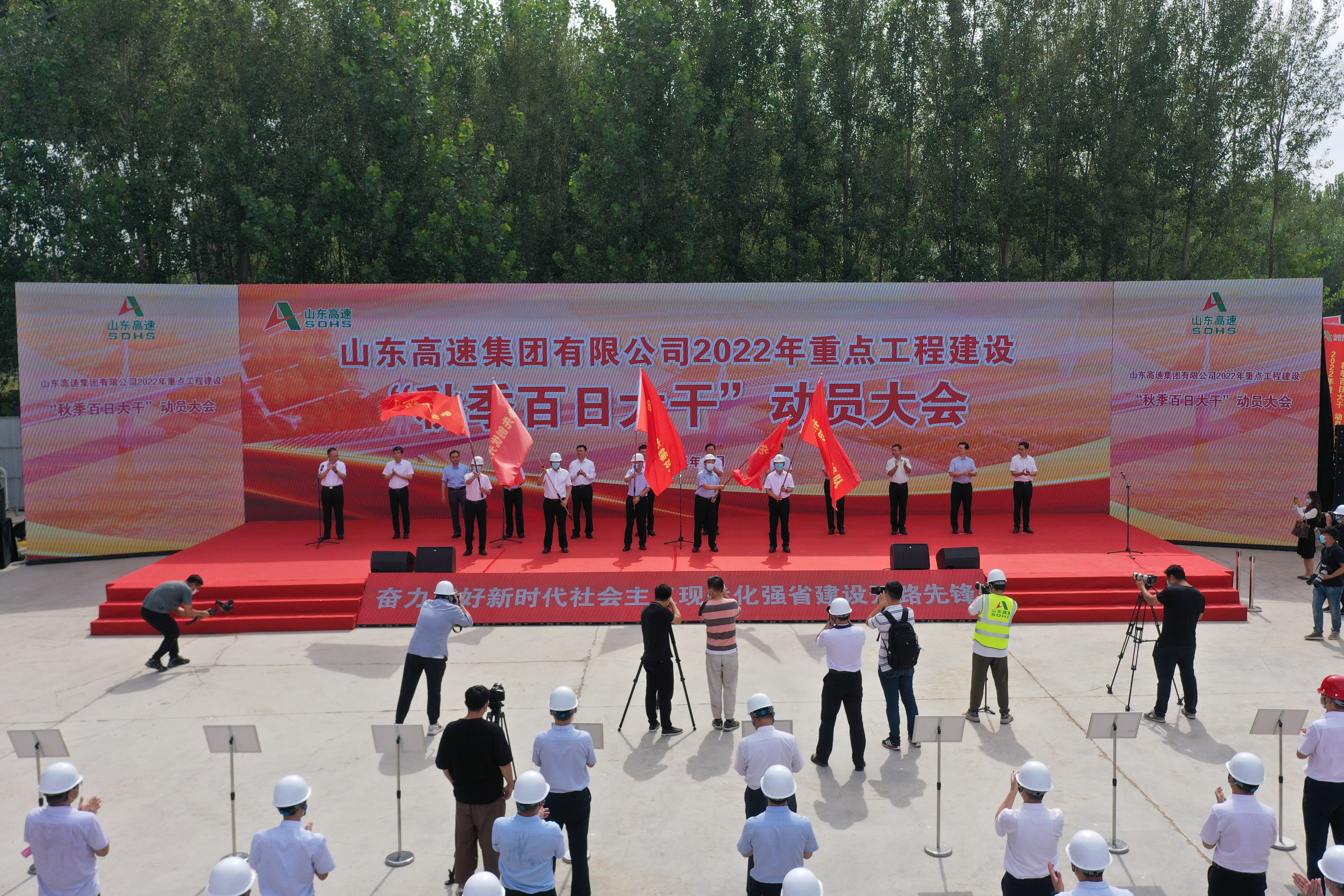 山东高速集团党委副书记、总经理王其峰出席会议并讲话。动员会上,建设单位、施工单位代表分别作表态发言,并向轨道交通集团、高速股份、建设管理集团、基础设施建设公司、齐鲁高速等5个山东高速集团权属单位授旗。
