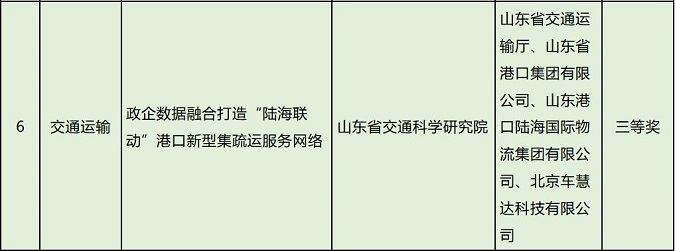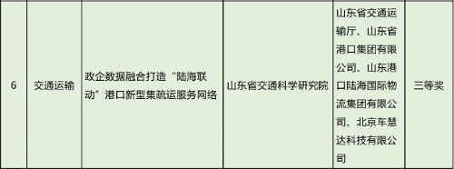 经国家数据局会同“数据要素×”大赛组委会相关单位线上初评、线下专家评审、公证人员公证以及相关部委代表现场监督,由省交通运输厅申报的“政企数据融合打造‘陆海联动’港口新型集疏运服务网络”项目荣获2025年“数据要素×”大赛全国总决赛交通运输赛道三等奖。