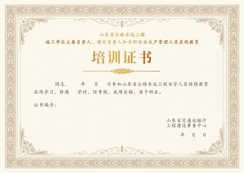4.公路水运工程施工单位安管人员继续教育合格证书样式
