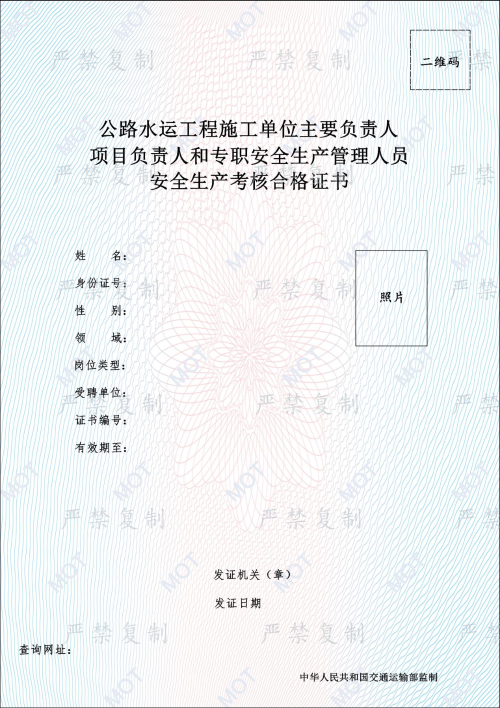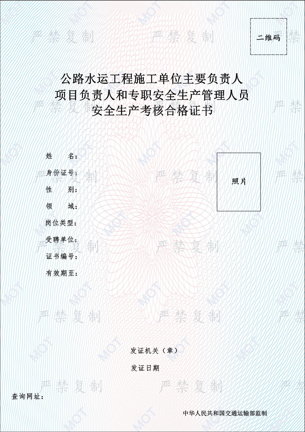 3.公路水运工程施工单位安管人员安全生产考核合格证书样式