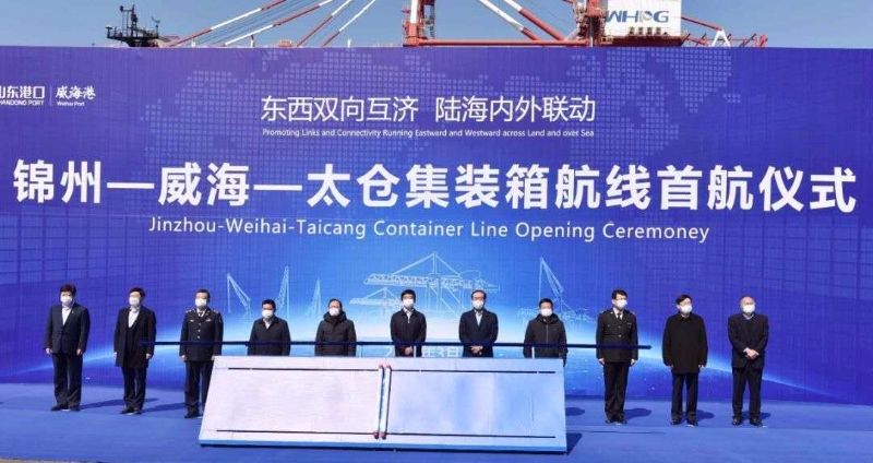 3月11日,“锦州—威海—太仓”集装箱航线首航仪式在山东港口威海港举行。