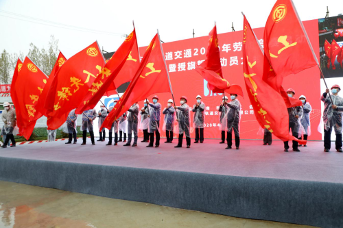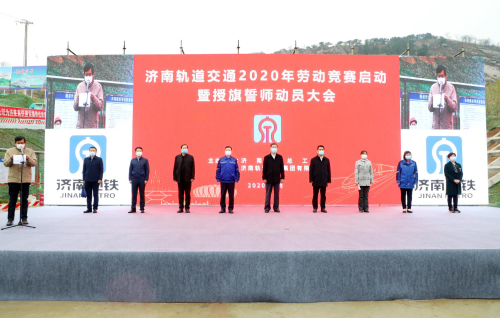 为贯彻落实全省交通运输重点工程“战疫情、保工期、比贡献”创先争优劳动竞赛要求,加快推进济南轨道交通建设,4月9日上午,济南市总工会、济南轨道交通集团联合主办的济南市轨道交通“建功地铁新时代、助力发展新动能”劳动竞赛暨授旗誓师动员大会在济莱高铁棋山隧道施工现场举行。