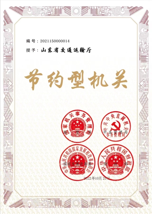 近日,山东省交通运输厅被国家机关事务管理局、中共中央直属机关事务管理局、国家发展和改革委员会、财政部联合授予“节约型机关”荣誉称号,圆满完成节约型机关创建工作目标。