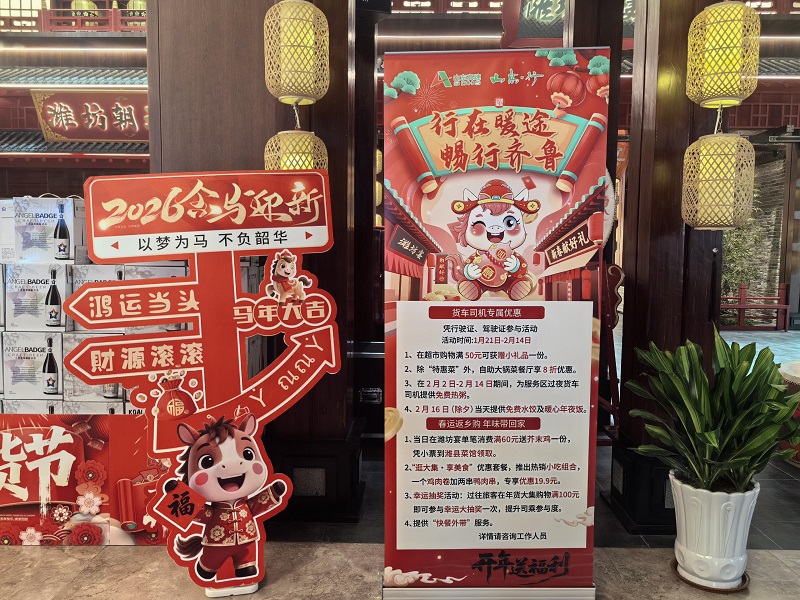 设立山东特色产品专区,引进知名“老字号”,增加年节商品供应。开展民俗互动体验等活动,积极打造“服务区+”特色消费场景,让司乘朋友的休憩时光更有趣味、更有收获。